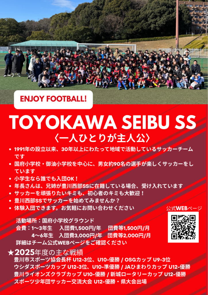 体験入団のお申し込みやお問い合わせはホームページの「体験入団」またはtoyokawawest@gmail.com までお願いします。